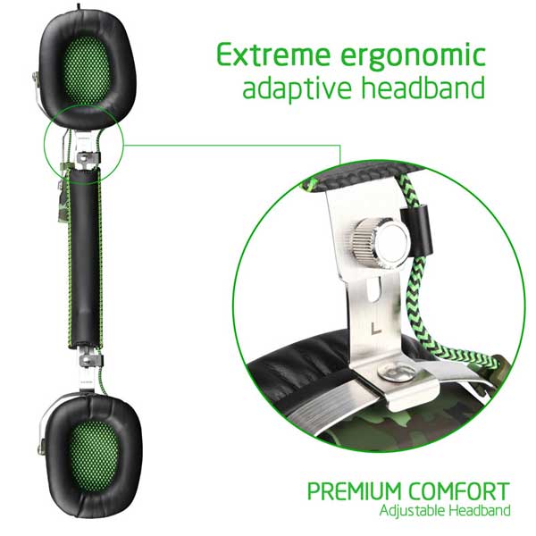 The breathable memory foam ear cushion helps to dissipate pressure and heat in long time wearing and blocks all ambient noises to ensure full concentration of gamers.