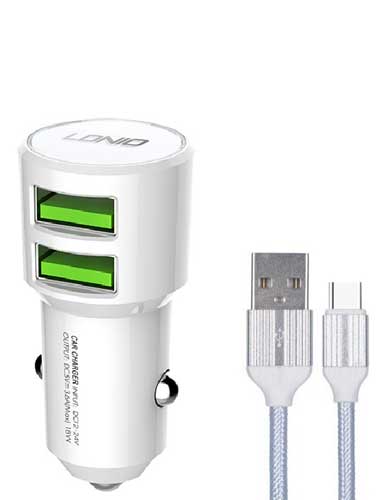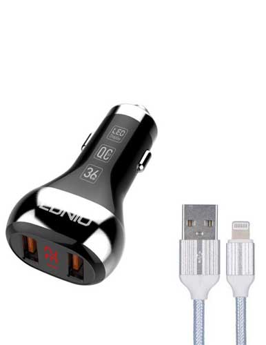 شارژر فندکی الدینیو مدل C2 به همراه کابل تبدیل لایتنینگ