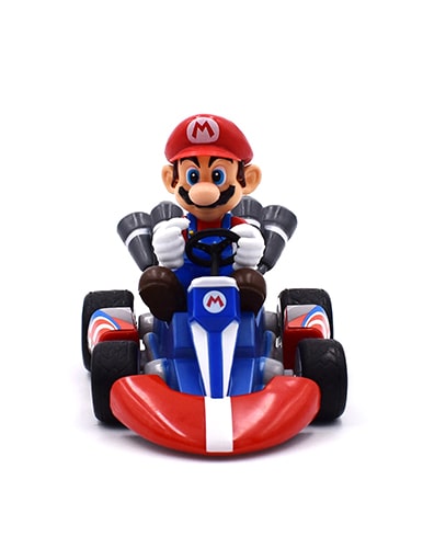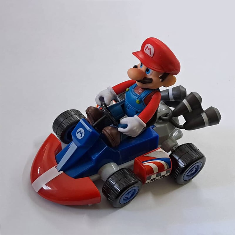 اکشن فیگور ماریو به همراه ماشین عقبکش ترکیبی از فیگور ماریو و یک ماشین اسباببازی عقبکش با ارتفاع 9 سانتیمتر است. این فیگور دارای دست و پاهای متحرک است و از ماشینی که بر روی آن قرار گرفته به سادگی جدا و به تنهایی نیز قابل استفاده است.