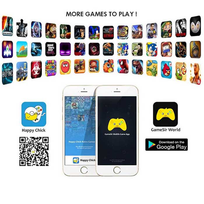 5.) toneladas de juegos Gamepad soportados populares Mobile en “gamesir mundo”; miles de juegos retro se puede encontrar y descargar en “Happy Chick” EMULADORES.