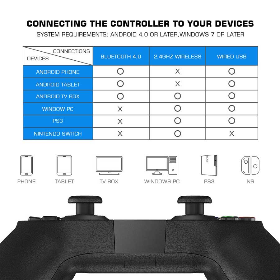 4. soporte mouse-teclado-monitor dispositivos: Android/Windows/PS3; Conexiones de 2,4 GHz/Bluetooth 4.0/conexión alámbrico.