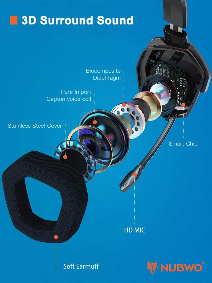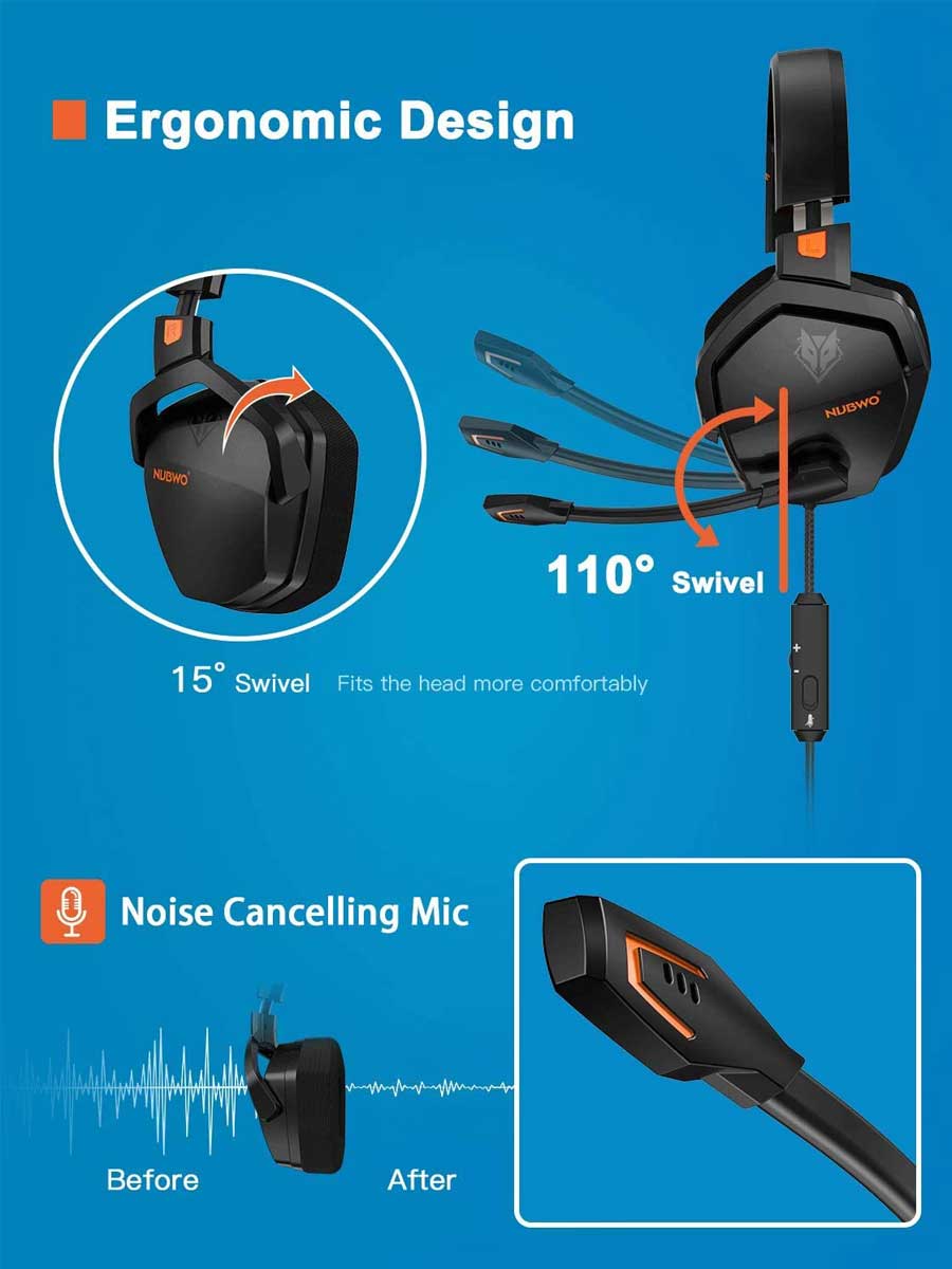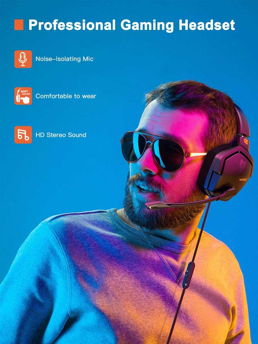 NUBWO G06 Headphones with mic is a primary kind of gaming headset for PlayStation 5, PlayStation 4, PC, Laptop, and Mac Games which brings you vivid sound field, sound clarity, and sound shock feeling. Its super soft over-ear pads are more comfortable for long-time wear, and it is a great headphone especially perfect for gamer!