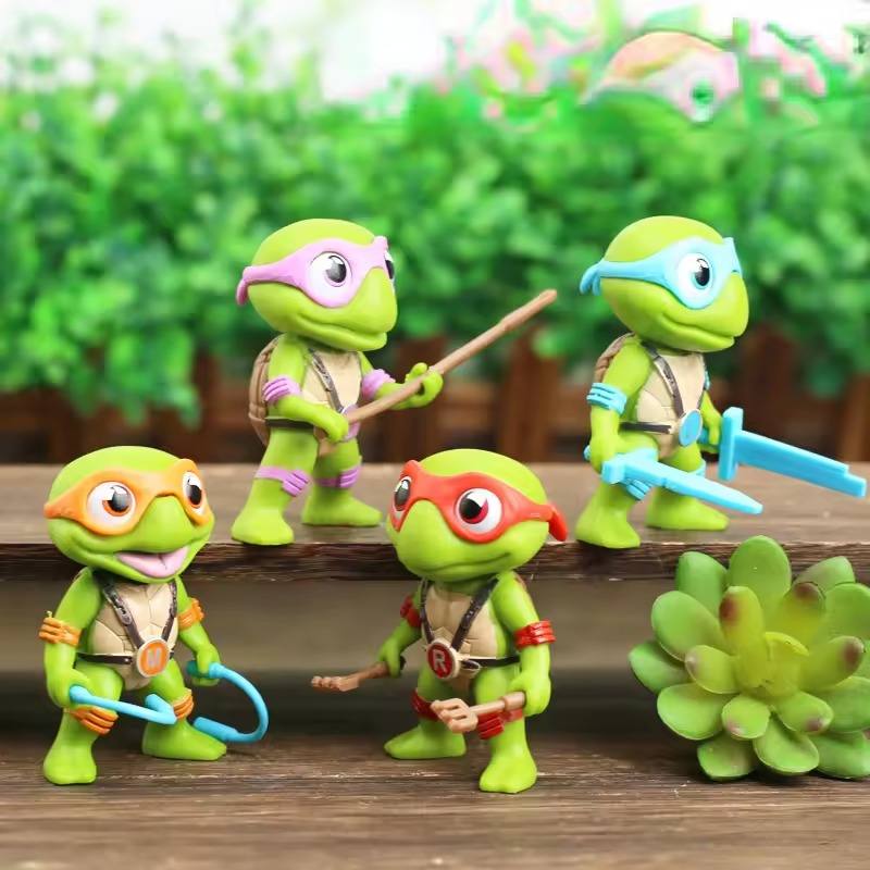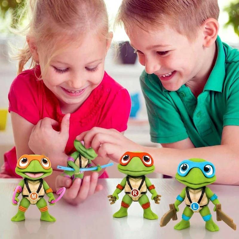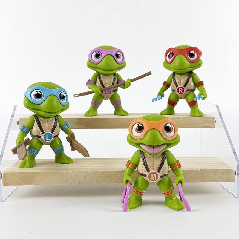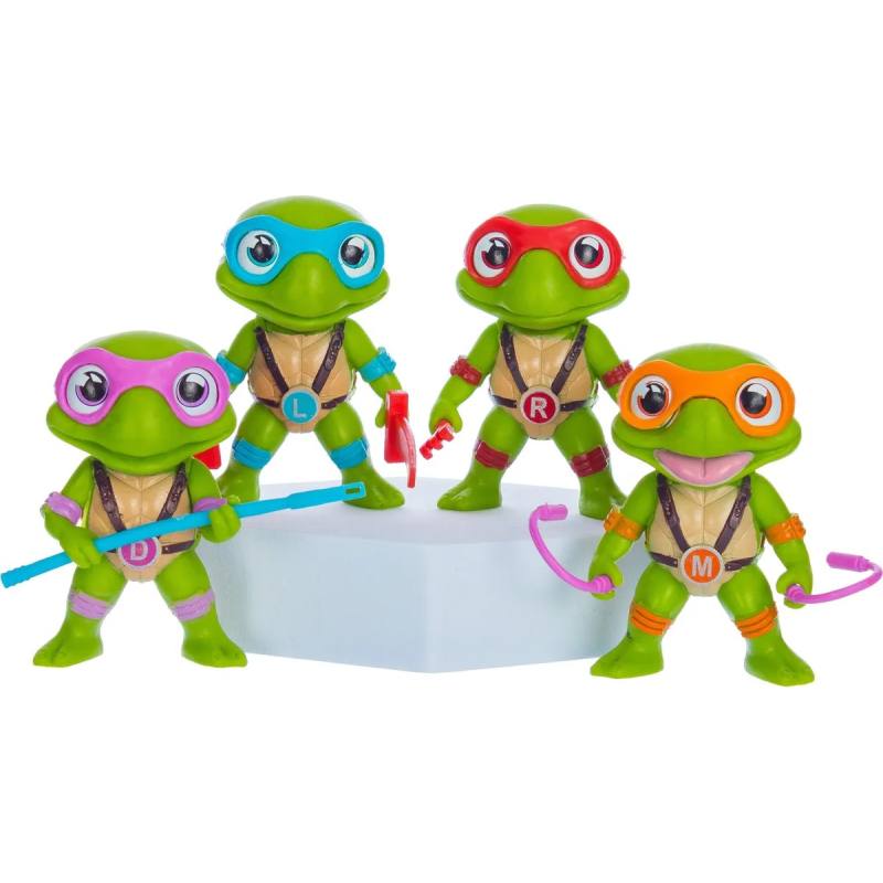 لاکپشت های نینجا از سری قهرمانان محبوب کودکان در همه دنیا هستند. این موجودات جهش یافته که توسط استاد خود برای کمک به شهروندان در سایه ها آموزش دیده اند، تلاش می کنند تا با از بین بردن جرم های سازمان یافته مافیایی امنیت را در شهر به وجود آورند. این چهار لاکپشت زیرنظر پدرخوانده خود اسپلینتر هنرهای رزمی ژاپنی را می آموزند. خانه آنها در فاضلاب های شهر نیویورک است و از همان جا سعی میکنند با اشرار ، اربابان شیطانی و مهاجمان بیگانه میجنگند. راف یا رافائل ماسک قرمز میزند رفتاری پرخاشگرانه دارد و گاهی اوقات حس شوخ طبعی دارد. لئوناردو ماسک آبی میزند و رهبری تاکتیکی و شجاع است و دوشمشیر به دست دارد. دوناتلو ماسک بنفش میزند شخصیت آرامی دارد و سعی میکند از دانش خود برای حل مشکلات استفاده کند. میکل آنژ ماسک نارنجی دارد و شخصیتی شوخ طبع ، آرام و خوش بین دارد. فیگور بچه لاکپشت های نینجا Ninja Turtles شامل هر 4 لاکپشت نینجا بوده و آن ها را به شکل کودکانی با چشم های درشت و بامزه و قد کوتاه نشان می دهد. جنس این فیگورها از پلاستیک ABS می باشد و برای ایستادن نیاز به پایه ندارند.