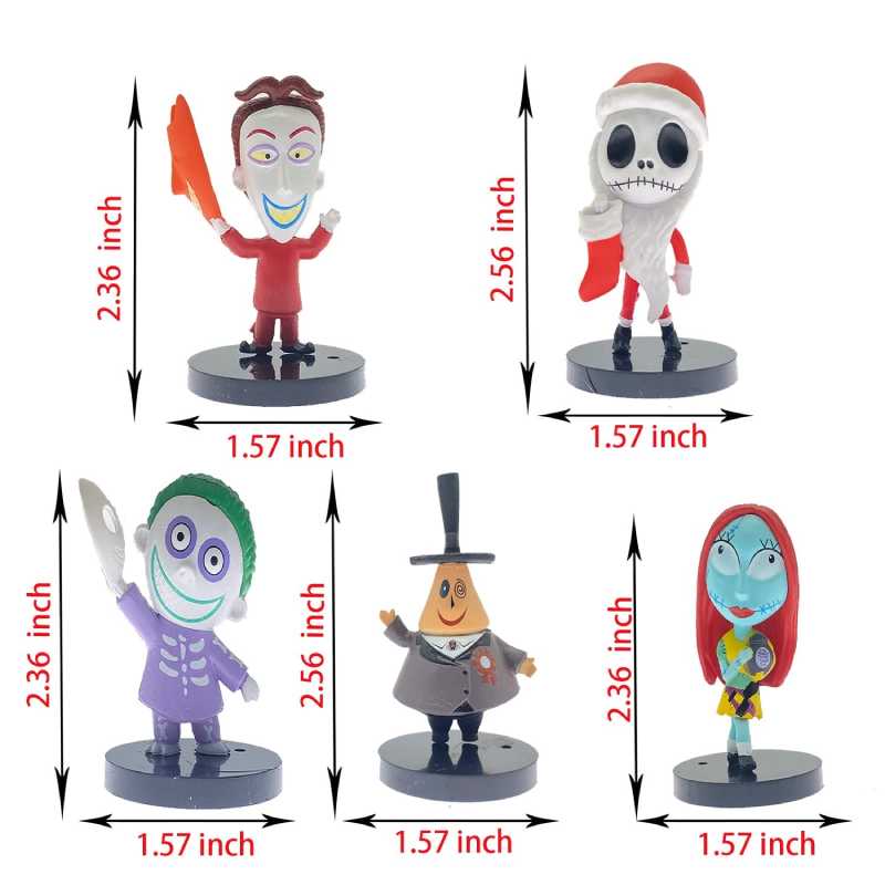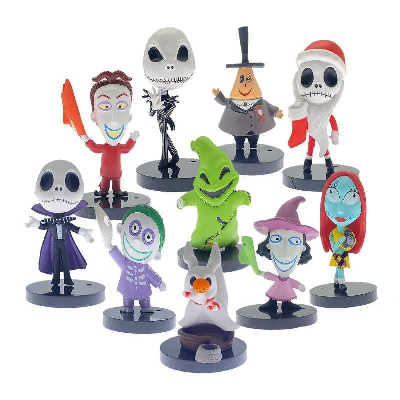 فیگور جک اسکلینگتون و همراهان ست 10 عددی، مینی فیگورهای جذاب دوست داشتنی از انیمیشن بامزه کابوس قبل از کریسمس می باشند که ارتفاعی حدود 7 سانتی متر دارند و از جنس پی وی سی سازگار با محیط زیست با کیفیت بالا و رنگ های زیبا ساخته شده اند. این مجموعه ده عددی از شخصیت های این کارتون الهام گرفته شده اند؛ شخصیت های سرزنده و جالب، زیبایی واضح چهره، از نوک انگشتان گرفته تا جزئیات مو مطابق کارتون طراحی شدند، که می توانند باعث تخیل کودک شما و وارد شدن به دنیای فانتزی و ماجراجویی در آن بشوند.