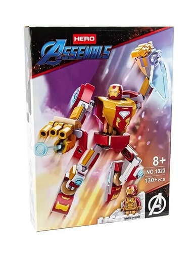 لگوی آیرون من در زره مکانیکی مدل 1023 دارای 130 تا قطعه کوچک رنگی هست که بعد از چفت شدن تکه ها به همدیگر، یک فیگور بزرگ از شخصیت آیرون من با زره مکانیکی خواهید داشت. از ویژگیهای این بازی ساختنی قطعاتش است که وقتی به هم متصل میشن، ظاهر ماشین خیلی شبیه به نمونه واقعیش در فیلم ها و انیمیشن های مارول میشه و این خیلی جذاب و عالی است.