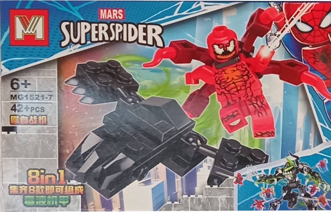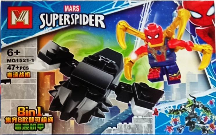 این لگو سوپراسپایدر مدل MG1521 ست 8 عددی، واقعا تخیل را برمی انگیزد، سرگرمی بی پایانی برای ساختن و بازی کردن ارائه می دهد و یک هدیه پر از هیجان برای تعطیلات، تولد یا هر روز دیگری برای کودکان بالای 6 سالی است که عاشق اسپایدرمن، ونوم، ابرقهرمانان و ربات ها هستند. با این لگو بچه ها می توانند دست ها و پاهای ابرقهرمان را برای نبرد با حریف شرور تنظیم کنند یا حتی در ترکیب با سایر مجموعه لگو گزینه های بازی بیشتری بیافرینند. این لگو محصولی از برند Mars (ام جی) بوده، که با رعایت استاندارد های مربوطه ساخته شده است. به همین دلیل هیچ لبه تیز و یا برنده ای، در قطعات آن قرار ندارد. این محصول می تواند هدیه ای جذاب و فوق العاده سرگرم کننده برای طرفداران باشد. می توان هر کدام از این 8 مدل را به صورت جداگانه درست کرد. اما فرزند شما با ترکیب همه مدل هایی که در اختیار دارد، می تواند یک ربات ونوم مکای بزرگ در ابعاد 14.5*9*11.5 بسازد.
