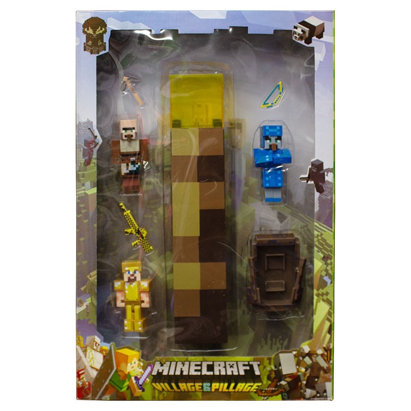 مجموعه اسباببازیهای ماینکرافت خود را با مجموعه های Village & Pillage، یکی از بهترین بهروزرسانیها در تاریخ این بازی محبوب، بروز کنید. در این مجموعه در کنار شخصیتهای سنتی استیو و الکس، میتوانید با زامبیها، خوکزنها یا نسخههای مختلف روستاییان و غارتگران، و همچنین سلاحها و ابزارهای جدیدی مانند کمانهای پولادی، تیرکمان، تفنگ ساچمهای و نیزه سهشاخ بازی کنید. همچنین میتوانید مینی فیگورها را در قایقهای پارویی یا واگنهایی که برای غلتیدن درست شدهاند، سوار کنید.