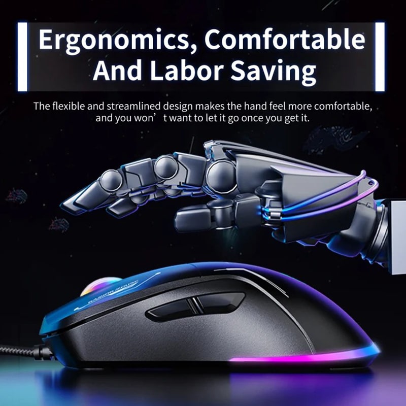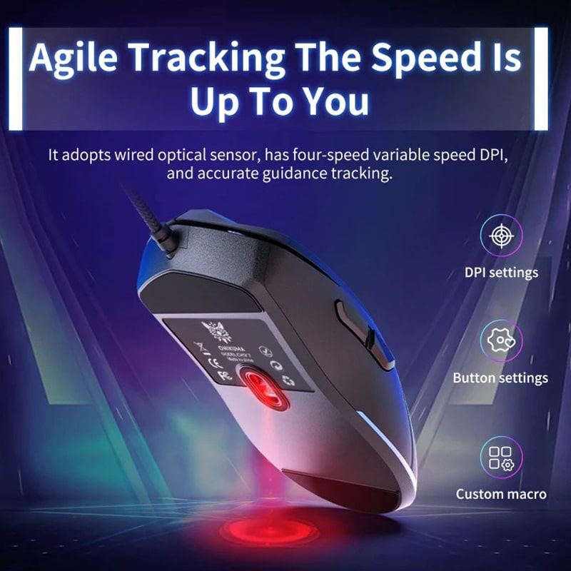 یکی از ویژگیهای کلیدی این ماوس، دقت قابل تنظیم با شش سطح DPI (800-1200-1600-2400-4800) است که امکان کنترل دقیق و شخصیسازی حرکات را برای کاربران فراهم میکند این ماوس دارای نورپردازی RGB با حالتهای تغییر متنوع است که جلوهای جذاب به میز کار یا بازی شما میبخشد.
