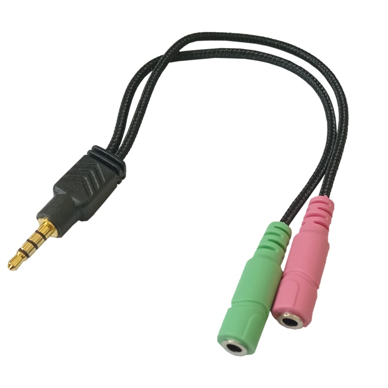 کابل مبدل AUX دو مادگی به یک نری (صدا و میکروفن دوتایی به یک فیش سه خط) برای اتصال هدست هایی که دو فیش مجزای میکروفن و صدا دارند به گوشی یا تبلت یا لپتاپ یا دستگاههایی که فقط یک فیش ورودی صدا دارند استفاده می شود. در واقع فیش های میکروفن و صدای جدا را به یک فیش Aux سه خط تبدیل می کند.