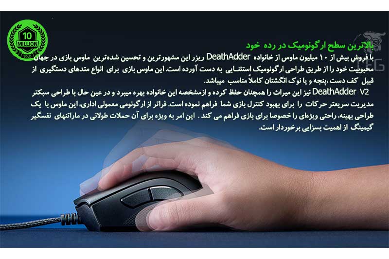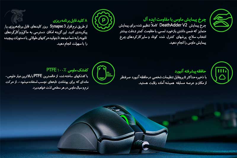 مشخصات موس گیمینگ ریزر RAZER مدل DeathAdder V2