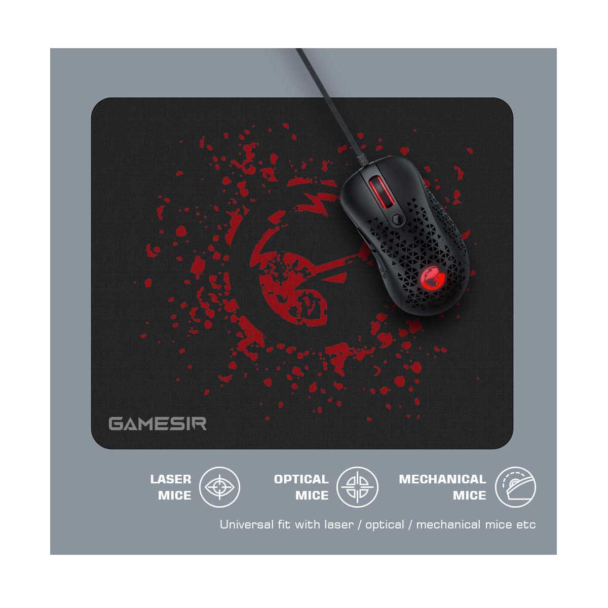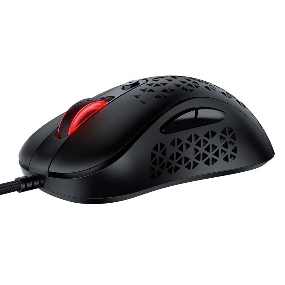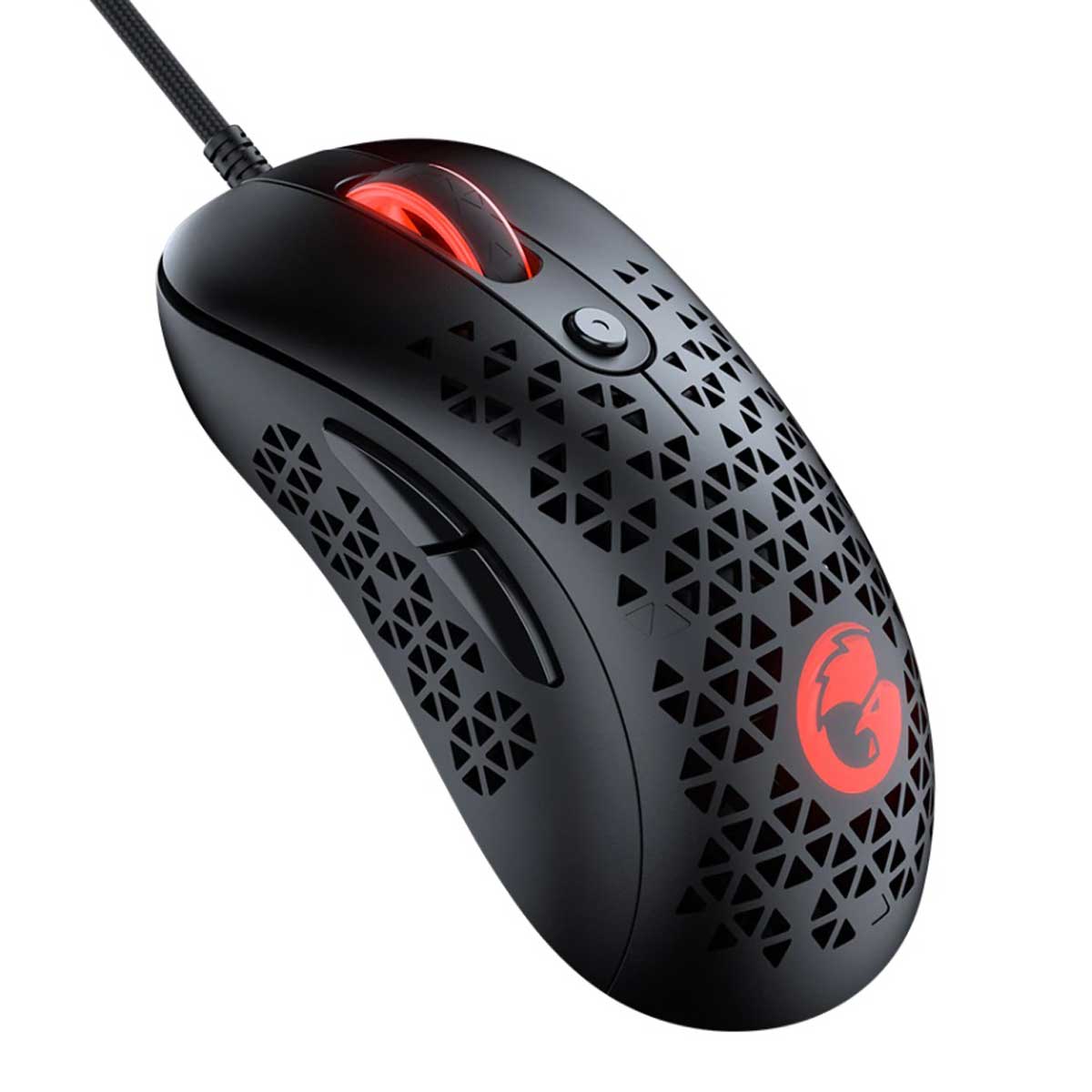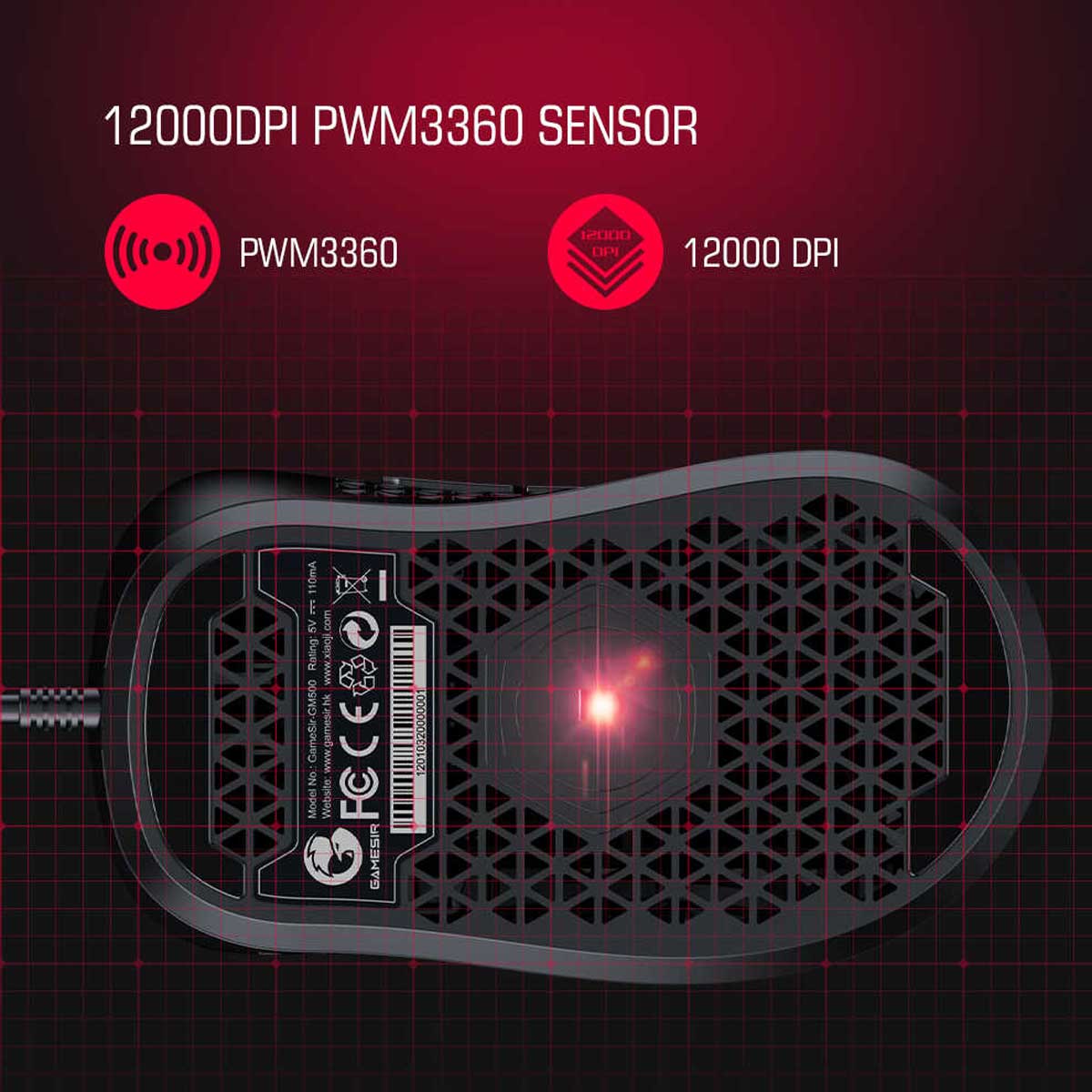 موس GameSir GM500 دارای بدنهای سبک است و حفرههای متعددی برای کاهش وزن و عبور هوا است که از تعریق در برابر رطوبت جلوگیری می کند و سرعت بسیار بالایی است و از سنسور اپتیکال PMW33600 با دقت 12000DPI بهره میبرد تأخیر یک میلی ثانیه و نرخ پاسخگویی 1000 هرتز است.