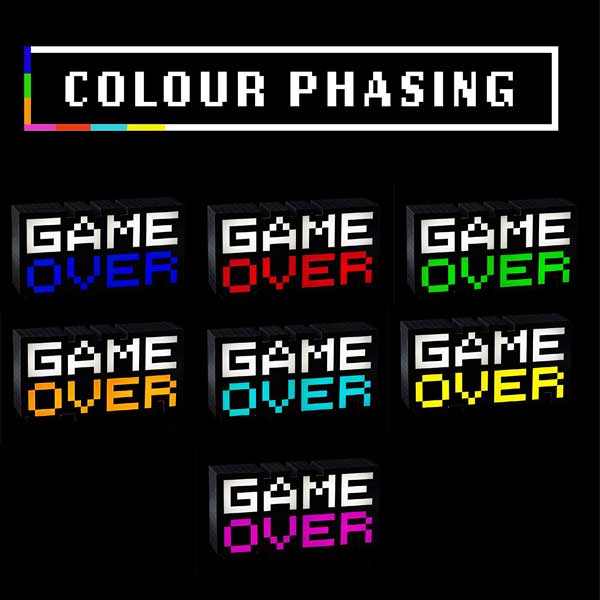 GAME OVER: Fans of vintage video games will love this light! Featuring the words “game over,” this light recalls back to gaming in the past. Fellow video gamers will love seeing this light!