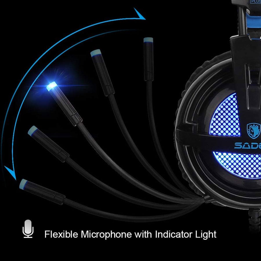 The flexible microphone is easy to adjust to the right position. The indicator light will be on as blue flashing mode when you mute the microphone.