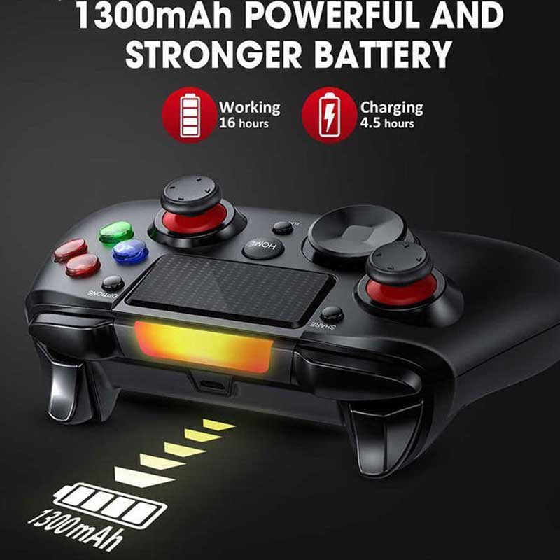 4 کلید قابل برنامه ریزی: در بخش پشتی بدنه گیم پد TSCO TG 170W، 4 عدد دکمه اضافه تعبیه شده است که کارکرد هر کدام از دکمه های بخش فوقانی را کپی می کنند. برای مثال ممکن است وقتی انگشتان اشاره خود را روی دکمه های L1 و R1 قرار داده اید، نخواهید از دکمه های L2 و R2 استفاده کنید. کافیست کارکرد دکمه های مذکور را به کلیدهای پشتی نسبت دهید تا کنترل بازی با دسته بازی بلوتوث تسکو TG 170W برایتان آسان تر شود.