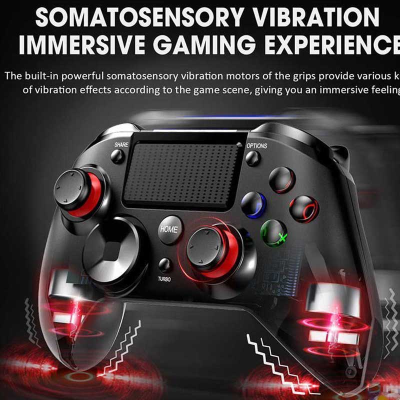 بررسی برای ps4: در درجه اول، این محصول اورجینال هست و مطمئناً از هر مدل دسته کپی بهتره. مشخصه که دسته اصلی همچنان بهترین گزینه است، اما با در نظر گرفتن قیمت، همین دسته میتونه کاملا مناسب باشه. تنها فرق از لحاظ امکانات، نداشتن اسپیکر هست که شاید واسه خیلیها اصلا اهمیت نداشته باشه. برای کسی که فقط دسته پلی استیشن داشته، حس دسته متفاوت و بزرگه. اما عادت میکنید. محل قرارگیری کلیدهای پشت مناسبه و به راحتی پروگرام میشن. برای خاموش/روشن کردن چراغها: Share + A برای پروگرام کردن کلیدهای پشت: Hold Turbo > Press one of the back button > Press the desired button