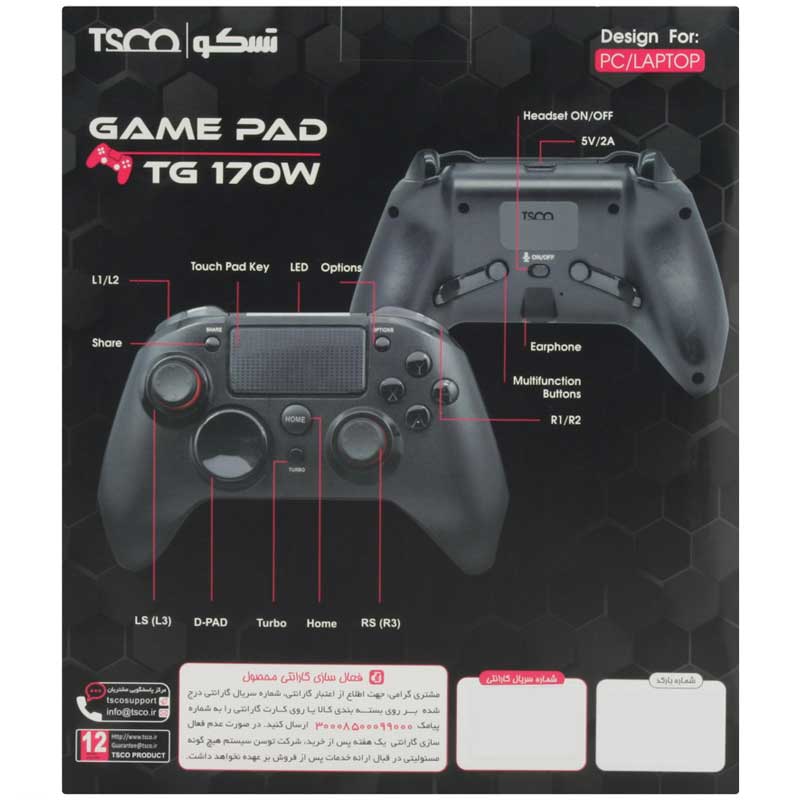 یکی از مهم ترین ویژگی گیم پد تسکو TG 170W را می توان کلید Share یا اشتراک گذاری دانست که شما می توانید لحظات زیادی از بازی را با دوستان خود به اشتراک بگذارید. همچنین می شود به آن یک هدست متصل کرد و تجربه بازی های گروهی را بهبود بخشید. از دیگر ویژگی های گیم پد TG 170W می توان به دو استیک استاندارد شستی، یک D pad روی قسمت سمت چپ، پد دکمههای عملکردی در سمت راست ؛ بهعلاوه موتور لرزانندهی Dual Shock اشاره کرد .
