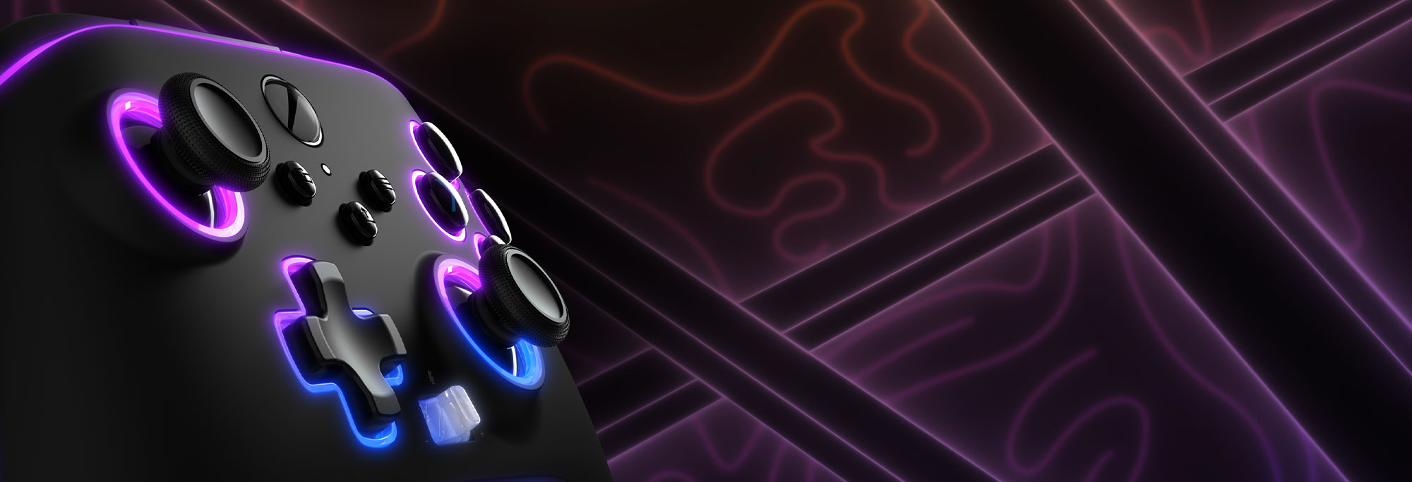 دارای یک دکمه برای تغییر رنگ LED دور گیمپد و دور دکمهها