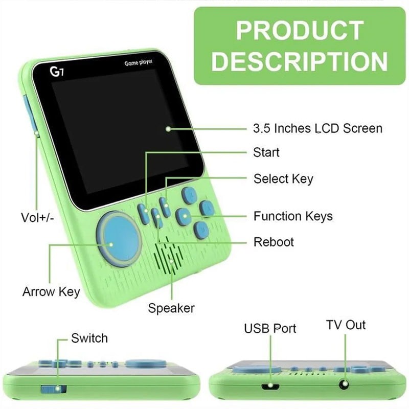 کنسول بازی دستی G7 اولترا-تین یک دستگاه بازی جمع و جور و قابل حمل است که با طراحی باریک و سبک خود، تجربه بازی‌های کلاسیک را در هر کجا که باشید برایتان فراهم می‌کند. این کنسول با ویژگی‌های جذاب و قیمتی مقرون به صرفه، گزینه مناسبی برای علاقه‌مندان به بازی‌های نوستالژیک است.