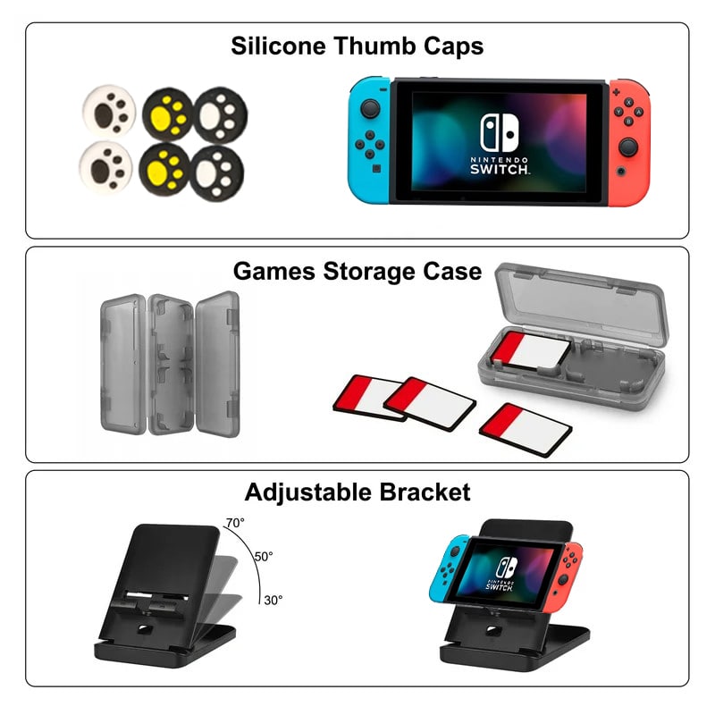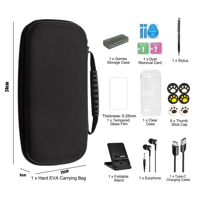 کیف و لوازم جانبی نینتندو سوییچ اولد 9 کاره یک بسته مقرون به صرفه با کاورهای محافظ و محافظ صفحه نمایش برای نینتندو سوییچ اولد و همچنین سایر لوازم جانبی مفید که به شما کمک می کند تا بیشترین بهره را از کنسول جدید خود ببرید. کیف و لوازم جانبی نینتندو سوییچ اولد 9 کاره از سوییچ اولد شما در برابر ضربه، شوک، خراش و موارد دیگر محافظت می کند. این کیف با ظرفیت زیاد برای نگهداری آسان کنسول و لوازم جانبی شما، طراحی شده است. با یک کیف محافظ که دقیقا اندازه است، یک محافظ صفحه نمایش با سختی 9H و آنالوگ های نرم برای دکمه شست، نینتندو سوییچ شما به طور کامل محافظت می شود و ظاهری کاملا نو خواهد داشت. کیف حمل مناسب برای نینتندو سوییچ اولد همچنین شامل انواع لوازم جانبی بازی است و هر آنچه را که نیاز دارید در اختیار شما قرار می دهد و به شما این امکان را می دهد که از بازی با دوستان در فضای باز یا در حین سفر لذت ببرید. کیف حمل برای نینتندو سوییچ اولد میتواند هدیه خوبی برای پسران، دختران، یا دوستان باشد.