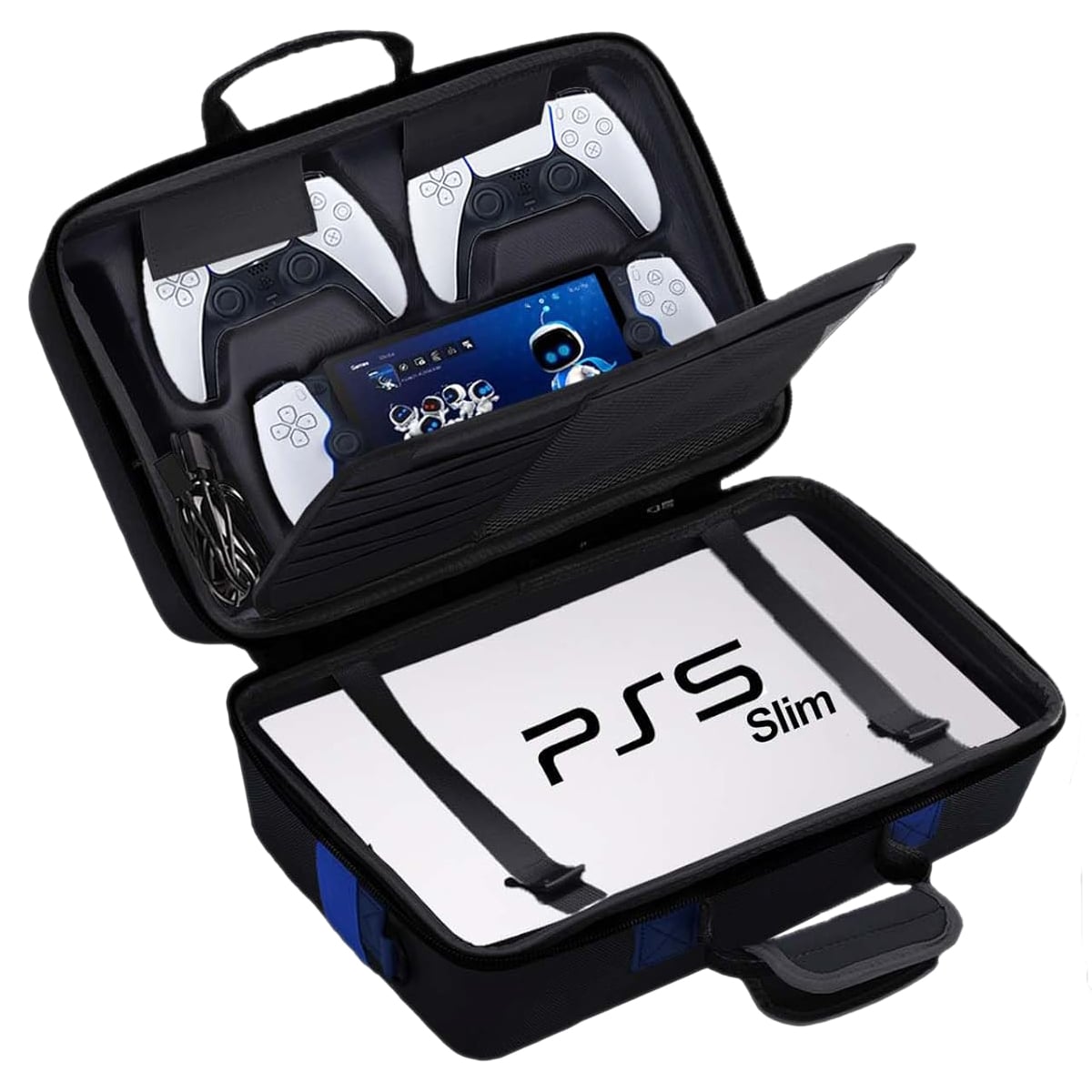 فضای داخلی جادار برای کنسول پلی استیشن 5 اسلیم ، دو دسته کنترلر، کابل ها، دسته پورتال