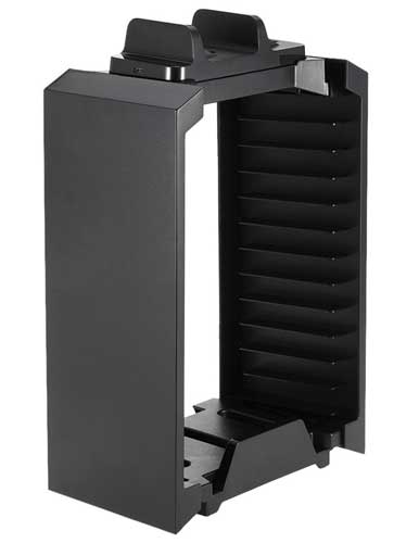 استند چندمنظوره کنسول PS4 ساخت شرکت DOBE به شما این امکان را میدهد تا کنسول و بازیهای خود را در فضایی جمع و جور قرار دهید. این استند از 5 تکه مختلف تشکیل شده که به راحتی به یکدیگر متصل میشوند. شما میتوانید کنسول خود را در یک سمت این استند به صورت عمودی قرار دهید و تا 12 عدد دیسک را نیز در سمت دیگر به صورت افقی، روی هم قرار دهید. این استند با کنسولهای پلی استیشن 4، پلی استیشن 4 اسلیم و پرو و حتی کنسول ایکس باکس وان اس سازگار است. همچنین، میتوانید استند شارژ Dualshock خود را نیز روی این استند قرار دهید.
