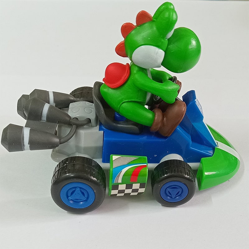اکشن فیگور یوشی به همراه ماشین عقبکش ترکیبی از فیگور یوشی و یک ماشین اسباببازی عقبکش با ارتفاع 9 سانتیمتر است. این فیگور دارای دست و پاهای متحرک است و از ماشینی که بر روی آن قرار گرفته به سادگی جدا و به تنهایی نیز قابل استفاده است.