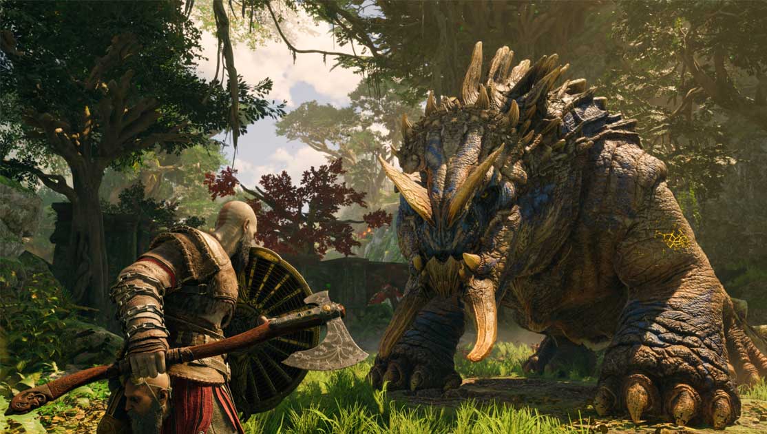 غوطه وری لمسی – استودیو سانتا مونیکا از قابلیت لمسی کنترلر بی سیم DualSense بهره کامل برده است. یک سکانس شامل سورتمه زدن به دور از بهمن خشن است. لمسی های کنترلر DualSense در دستانم کوبیدند و هم صدایی عمیق از زمین های تندرو و هم توده های سبک تری از برف را که در اطراف می چرخید را منتقل می کرد. در نبرد، تبر لویاتان یک مشت احشایی اضافی را بسته میکند، و زمانی که سلاح بومرنگی فراخوانی میشود، هپتیکها به تدریج متورم میشوند تا زمانی که تبر با صدایی گوشتی در دست قرار میگیرد. طیف لمسی ها همچنین بافت را به لحظات ظریفی می رساند، مانند کریتوس که بدن خسته خود را در تخت خوابش می گذارد تا بخوابد.