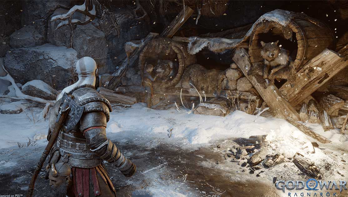 زمستان گذرانی در Svartalfheim – در حالی که Fimbulwinter میدگارد را در سرما و برف احاطه کرده است، تأثیرات متفاوتی در قلمروهای دیگر داشته است. به عنوان مثال، در Svartalfheim، فشار زیرزمینی افزایش یافته است و زمین را با آبفشان های قدرتمند پر کرده است. میمیر (سر عاقل و سخنگو که به کمربند کریتوس بسته شده است) نیز اشاره می کند که بوی قوی در سراسر زمین پخش شده است.