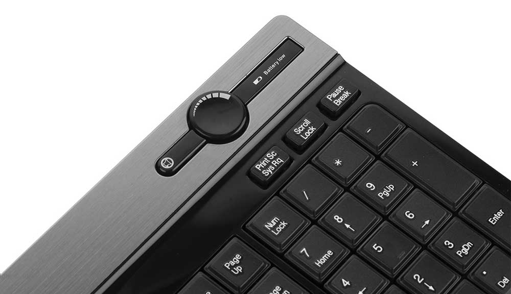 ماوس این مجموعه توسط یک گیرندهی USB به کامپیوتر متصل شده و تا مسافت 10 متر برد دارد. توان مورد نیاز اقلام این مجموعه توسط دو عدد باتری سایز AAA تامین میشود.