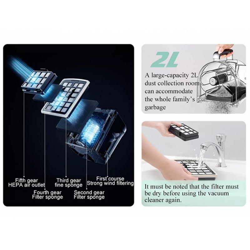 مکش قدرتمند ذرات میکرو، گرد و غبار شناور، مو و مواد حساسیت زا