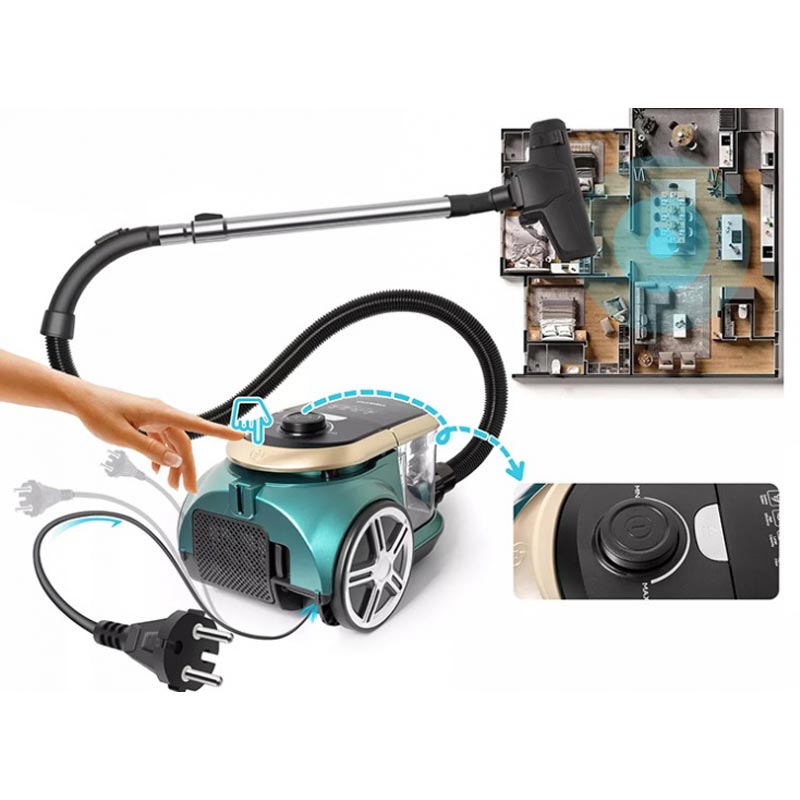 از دیگر ویژگی های این جاروبرقی، داشتن لوله قابل تنظیم است که برای دسترسی به مکان های دشوار یا سقف های بلند، گسترش می یابد. سیم بلند 5 متری این محصول، محدوده تمیز کردن بیشتری را برای کاربر فراهم می آورد. فیلترهای موجود در این محصول به راحتی قابل جدا شدن هستند و می توانید آن ها را مستقیما زیر آب شستشو دهید.
