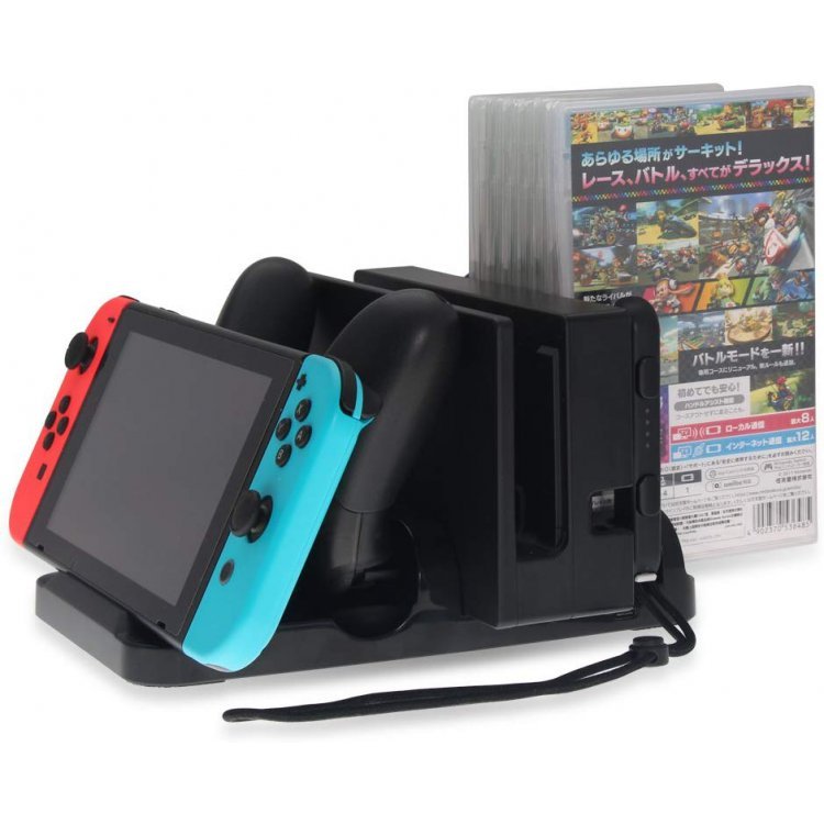 استند شارژ نینتندو سوییچ نه تنها به شما اجازه میدهد تا کنسول نینتندو سوییچ و کنترلر پروی آن را به صورت همزمان شارژ کنید، بلکه فضای نگهداری داک کنسول، مچبندهای جویکانها و 6 کارتریج بازیهای نینتندو سوییچ را دارد و دارای یک پورت USB C است که برای اتصال به منبع برق یا شرایط مختلف قابل استفاده است. این وسیله نه تنها یک استند شارژ مناسب است، بلکه برای نظم دادن به سیستم گیم شما نیز کاربردی است. کف این دستگاه به گونهای است که امکان سر خوردن آن وجود ندارد و بدنه پلاستیکی مقاومی دارد.