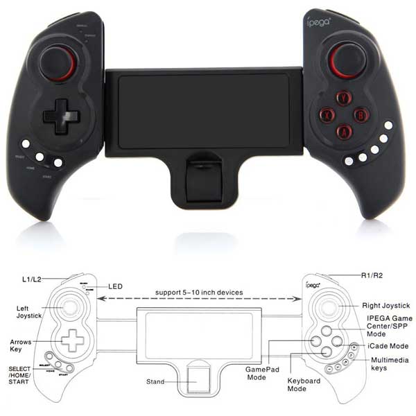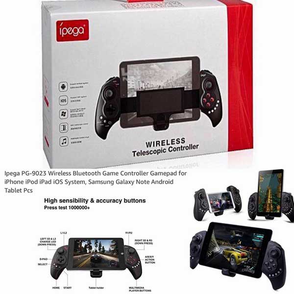 دسته های بازی اندرویدی وسایل جانبی جدیدی است که روانه بازار فناوری شده اند. در مدل های پیشین یکی از ضعف های این دسته های بازی عدم کارایی برای تبلت ها و گوشی های بزرگتر از 6 اینچ بود. در مدل دسته بازی بلوتوث ipega PG-9023 این محدودیت کاملا رفع گردیده است و تبلت های با صفحه نمایش 10 اینچ نیز قابلیت اتصال به این دسته های بازی را نیز دارا می باشند. این نوع مدل از دسته های بازی قابلیت مانور بسیار بالایی داشته و با داشتن دکمه های مالتی مدیا و سایر دکمه های دیگر که هر کدام از آنها دارای عملگر های مجزایی میباشد توانسته رضایت کاربران را برای استفاده از این دسته بازی به خود جلب نماید این نوع دسته بازی نیز مانند سایر مدل مشابه خود دارای یک باتری لیتینیومی با قدرت 380 میلی آمپر می تواند تا 19 ساعت به کار خود بی وقفه ادامه دهد.
