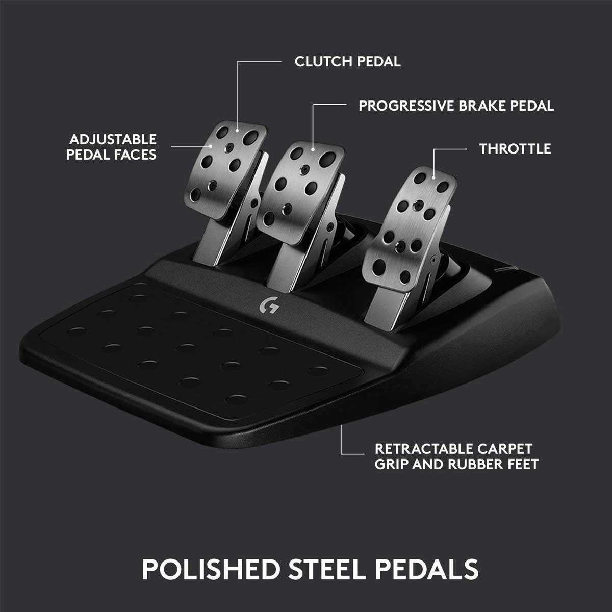 پدالهای خرید فرمان بازی لاجیتک G923 برای PS4، مخصوصا پدال ترمز آن از دیگر فرمانهای بازی سریعتر، پویاتر و دقیقتر هستند. سیستم فنر پیشرفته این پدالها، سیستم ترمز یک اتومبیل مسابقه را با دقت بسیار بالا برای شما شبیهسازی میکند. شما همچنین میتوانید موقعیت این پدالها را به دلخواه خود تغییر دهید تا کنترل بیشتری روی بازی خود داشته باشید.