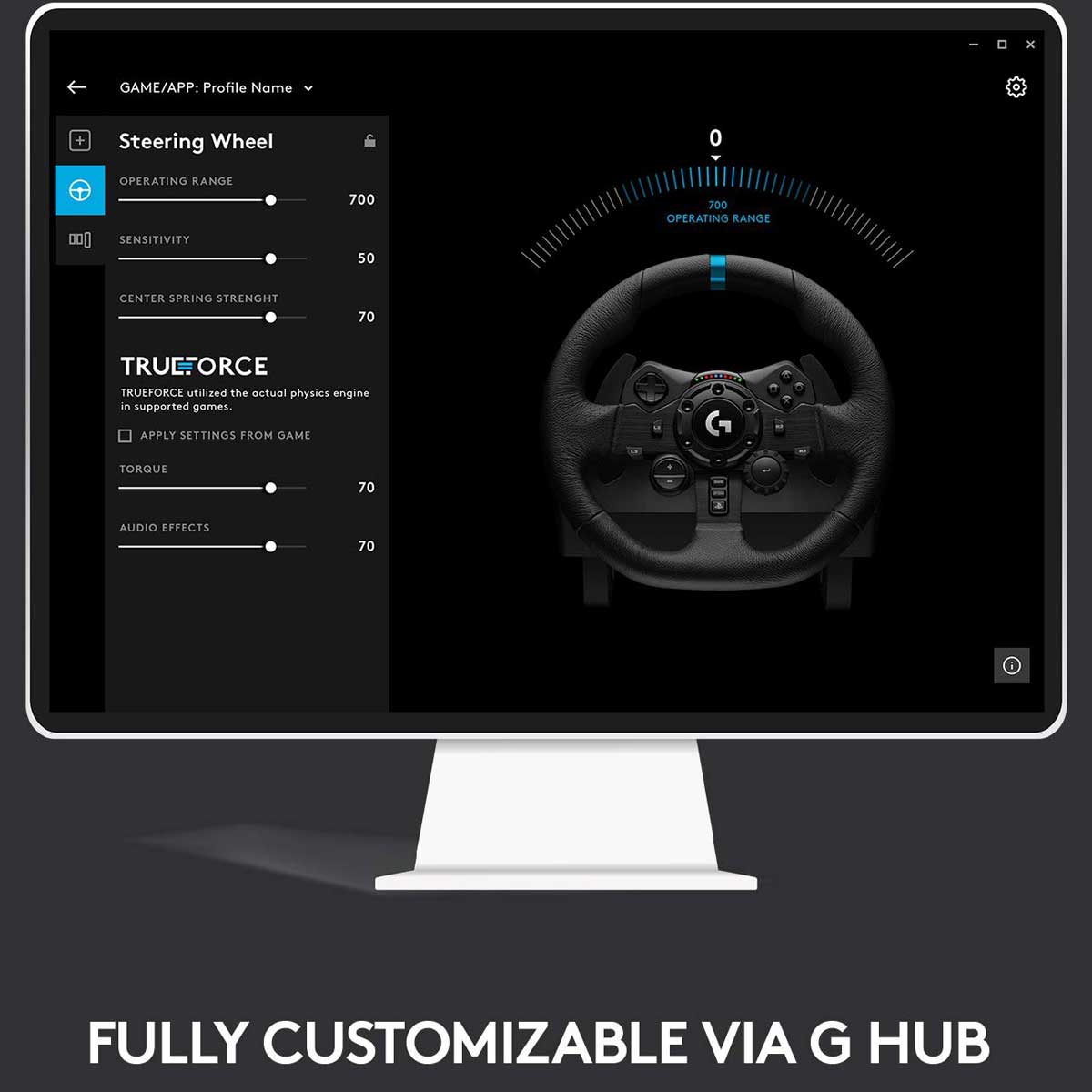 با نصب نرم افزار G Hub و اتصال فرمان G923 به کامپیوتر، میتوانید آن را به دلخواه خود شخصیسازی کنید. حساسیت فرمان، سطح پاسخدهی و تغییر عملکرد دکمهها، تنها تعدادی از کاربریهای نرمافزار G Hub هستند شما با این نرمافزار میتوانید برای هر بازی، پروفایلهای مختلفی از تنظیمات خود بسازید و به سرعت آنها را در بازی فعال کنید.