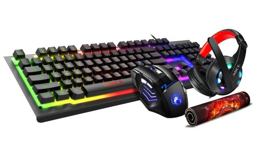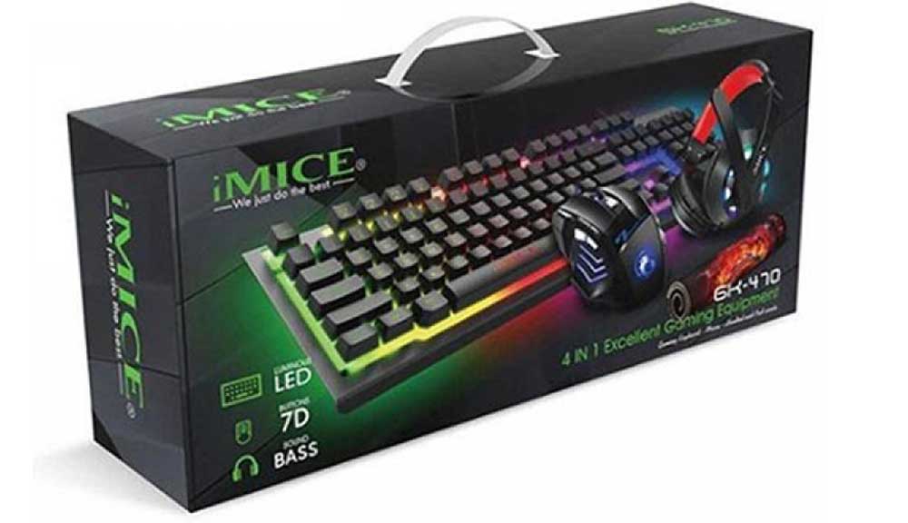 کیت لوازم جانبی گیمینگ iMice GK-470 شامل کیبورد، موس، موس پد و هدست مخصوص بازیهای رایانهای میشود. این چهار محصول دارای رنگپردازی ویژه و پشتیبانی از نورپردازی LED هستند. کیبورد، موس و هدست این پک با کابل به کامپیوتر شما وصل میشوند و هدست دارای صدای بیس قوی و فراگیر است.