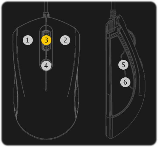 + کلید اختصاصی با قابلیت تنظیم حساسیت سنسور در پنج حالت 800، 1600، 2400، 3200 و 5000DPI