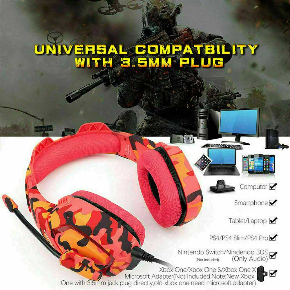 Gaming Headset PS4,Wired Stereo Game Headphones with Crystal Clear Sound, LED Lights & Noise-canceling Microphone for PlayStation 4 Xbox One(Adapter Need) PC Laptop Tablet Mobile