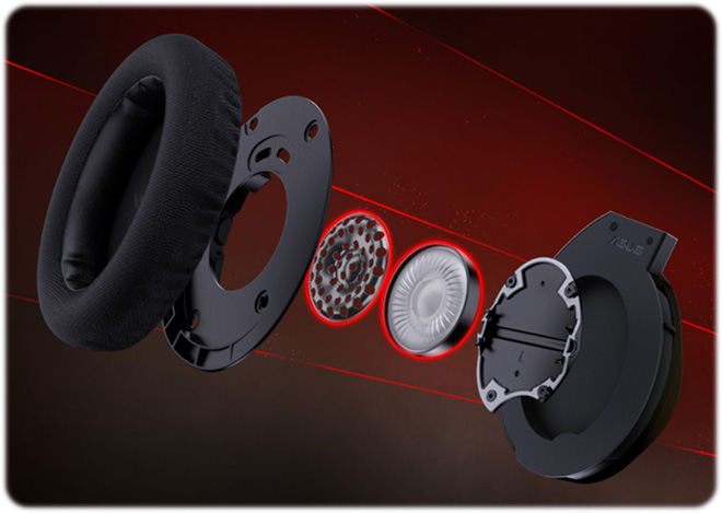 + ارائه اصوات غنی و شفاف به دلیل طراحی انحصاری کمپانی ASUS و حبس کامل هوا در داخل حفره های صوتی