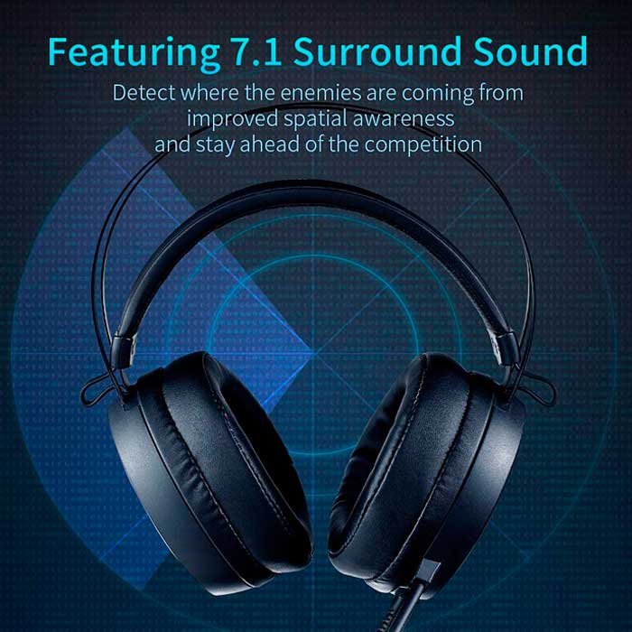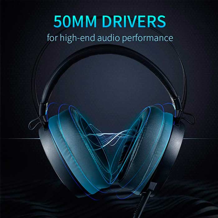 Virtual 7.1 channel audio output brings you stunning surround sound experience, 50mm sound-emitting unit interprets audio details. With splendid ambient noise isolation, acoustic positioning precision enhance the sensitivity of the speaker unit, bringing you vivid clarity sound field and shock feeling sound.