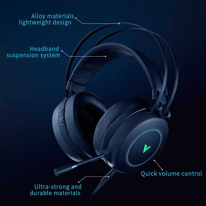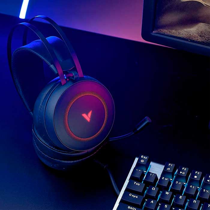 RAPOO headset acord with ergonomic design, Lightweight design with headband suspension system can reduce hearing impairment and heat sweat. Comfortable soft leather ear pads and memory foam fit your ears with ease and ensure the best comfort even after a longer period of wearing. Glaring RGB lights desigend on the earcups to highlight game atmosphere.