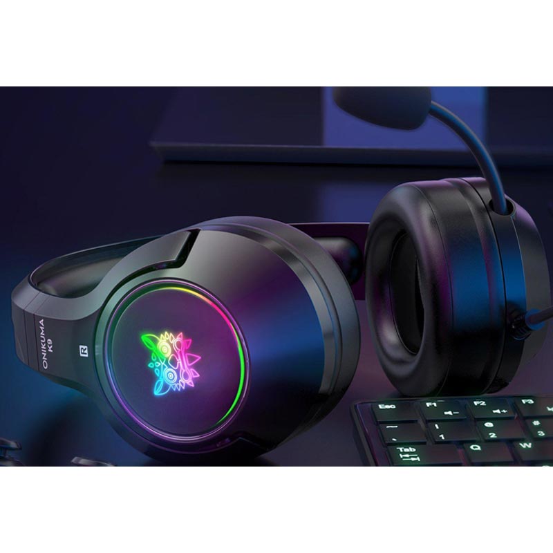 هدست گیمینگ اونیکوما Onikuma K9 دارای نور ال ای دی است که با اتصال کابل USB میتوانید آنرا شارژ کنید این هدست دارای ویژگی حذف صدای مزاحم محیط یا همان نویز کنسلینگ بهره میبرد و دارای صدای استریو و فوقالعاده شفاف است.