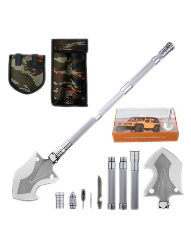 بیل چند کاره آفرود و کمپینگ مناسب برای استفاده های کوهنوردی و کمپینگ طراحی شده است و دارای شکل ظاهری U تیز در لبه است یک لبه بیل جهت برش طناب و استفاده به عنوان قلاب می باشد. این وسیله کارآمد دارای یه لبه تیز در طرف دیگر بیل جهت استفاده به عنوان تبر است.