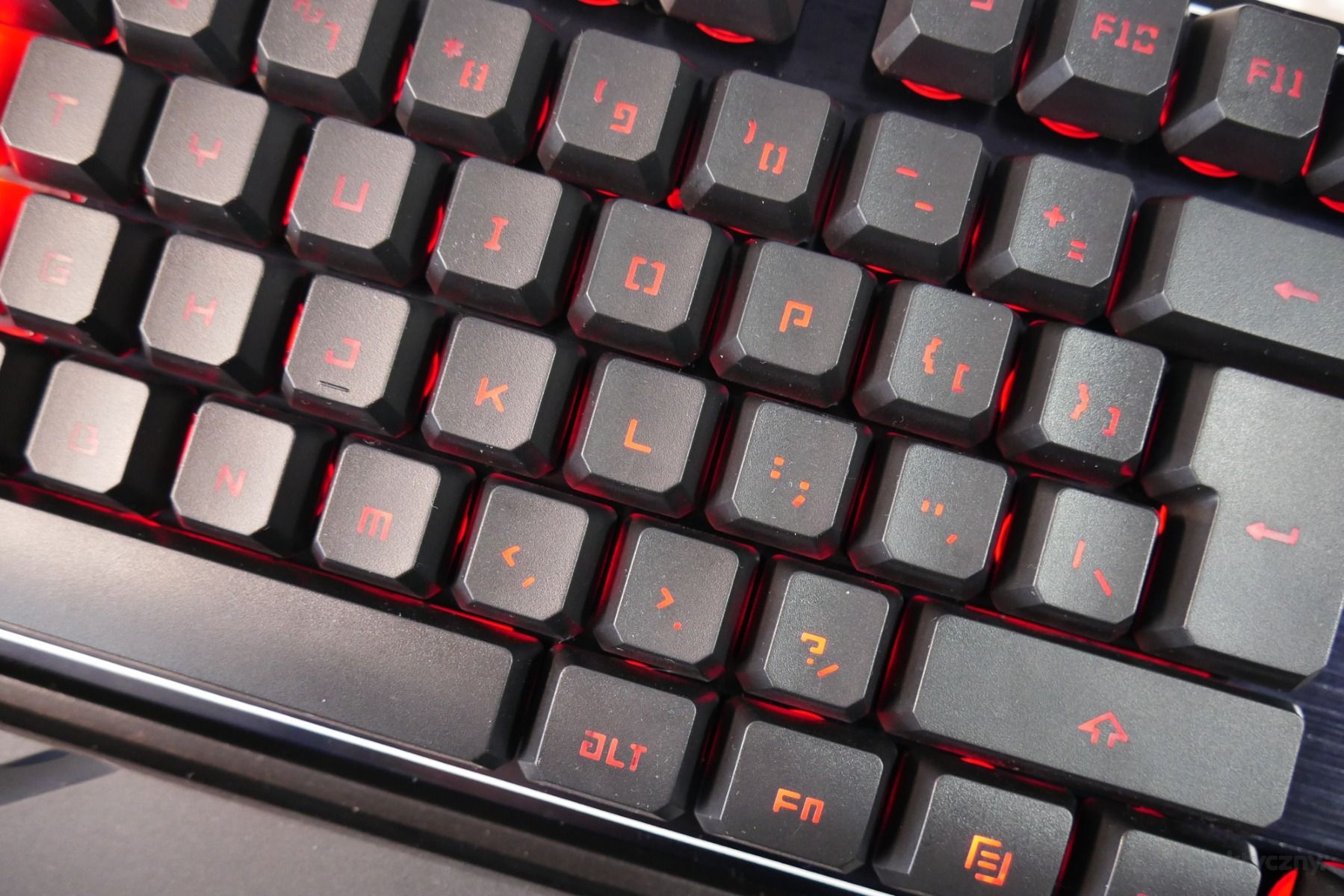 استفاده از سوئیچ های نوری LK Libra بر روی 8 کلید پرکاربرد Q/W/E/R/A/S/D/F با سرعت پاسخگویی 0.2 میلی ثانیه، طول عمر 100 میلیون ضربه و نرخ نمونه برداری 1000 هرتز همراه با کلیدهای پلاستیکی ABS با رنگ قرمز