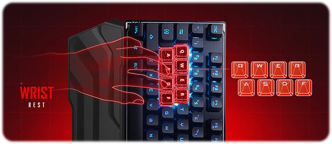+ اجرای طولانی مدت بازیهای رایانه ای با تعبیه تکیه گاه ارگونومی مچ دست با امکان جداسازی آسان