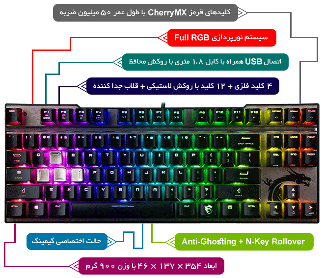 – پشتیبانی از تکنولوژی Anti-Ghosting با امکان فشردن کلیدهای مختلف به صورت همزمان (N-Key RollOver)