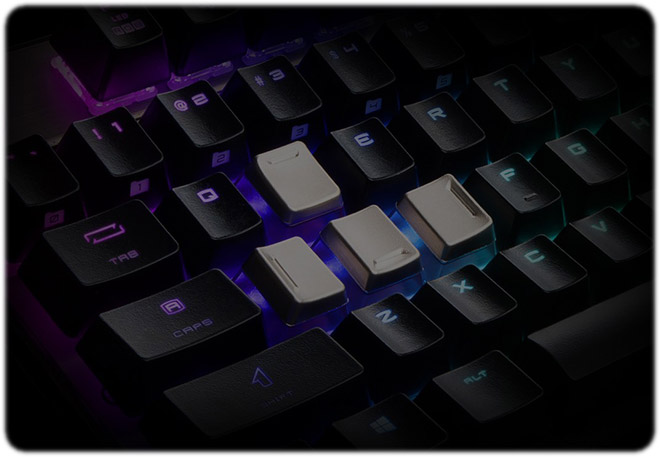1- استفاده از پلاکهای فلزی از جنس آلیاژ روی در بخش کلیدهای چهارگانه WASD به منظور افزایش سهولت کاربری و ارائه تجربه ای متفاوت از اجرای بازیهای رایانه ای