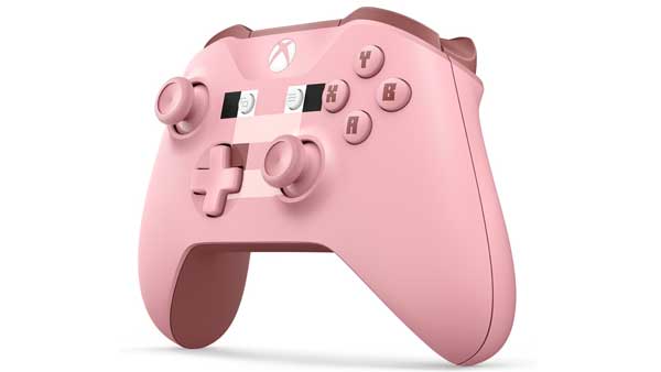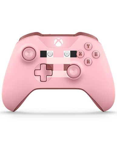 دسته بازی ایکس باکس وان اس مدل MINECRAFT PIGیکی از کنترلرهای ماینکرافت است. صفحه جلویی با مربعهای سبز و سیاه به شکل توده و یک تصویر TNT بر روی درب پشتی باطری که با برداشت از بازی، طراحی شده است. استیک، پد هدایتی و دکمهها به کلی تغییر کردهاند حتی فونت کاملا جدیدی روی آنهاست که از رابط کاربری (UI) داخلِ بازی برگرفته شده. روی این کنترلر بازی هیچ گیرنده پلاستیکی وجود ندارد اگرچه بافت زبر و اتصال بلوتوث مثل دیگر اکس باکس وان اسها موجود است. اگر چه این کنترلر به صورت جداگانه با قیمت 64.99 دلار در دسترس است، طرفداران همچنین میتوانند آن را با استفاده از باندل Minecraft Xbox One S به دست آورند.