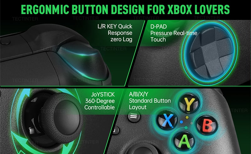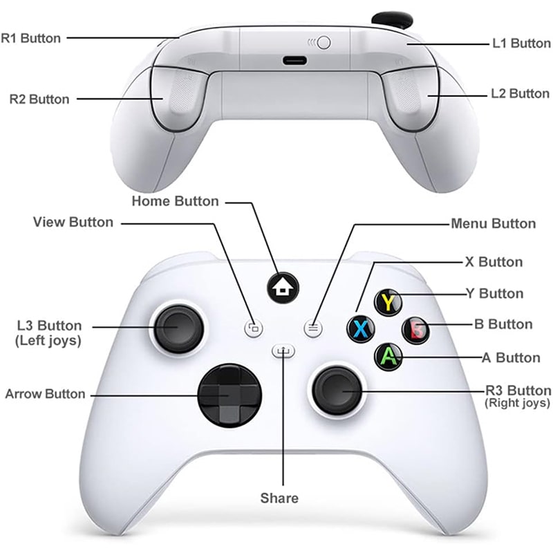 دسته Xbox Robot White دارای تمام دکمه ها و استیک های استاندارد Xbox است،