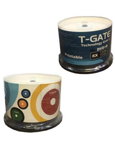 دی وی دی 8.5 گیگابایت (PRINTABLE (T-GATE بسته 4 عددی مناسب رایت و چاپ با پرینتر جوهر افشان می باشد.قابلیت سرعت رایت تا 8X میباشد.که جهت رایت اطلاعات با سرعت بالا و فیلم و گیم با سرعت پایین تر رایت شود بهتر است.